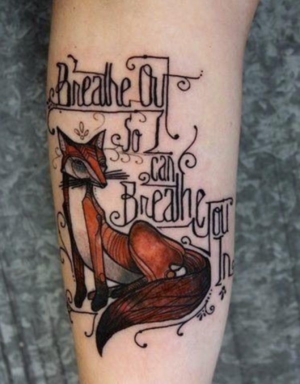 手臂狐狸英文字母彩绘纹身