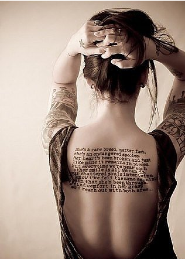 时尚美女后背英文纹身