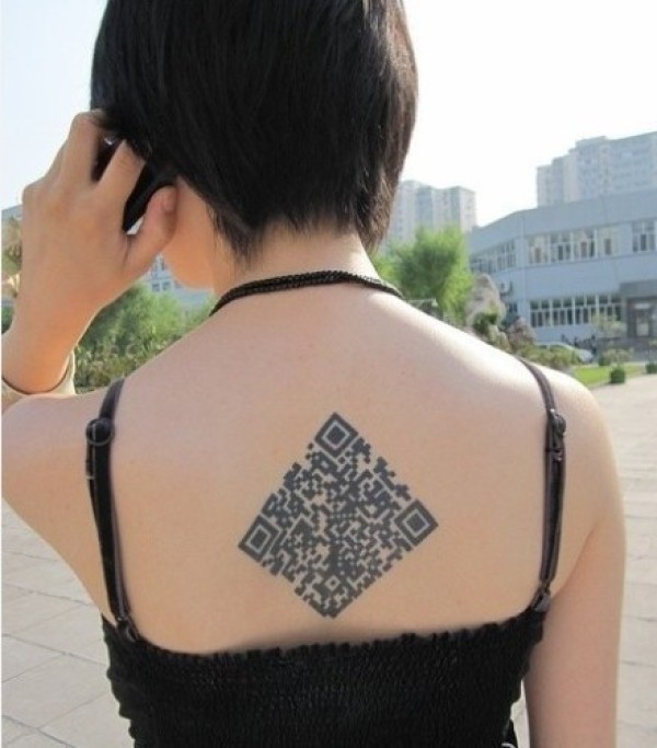 个性的女生后背二维码纹身图案
