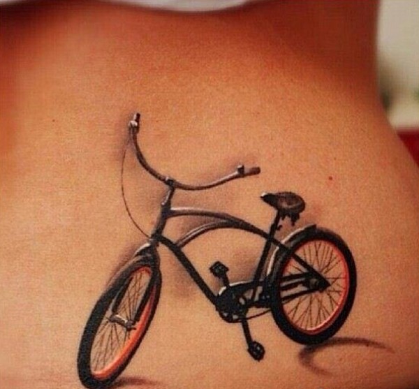女生后腰纹身黑白灰风格抽象线条纹身图案