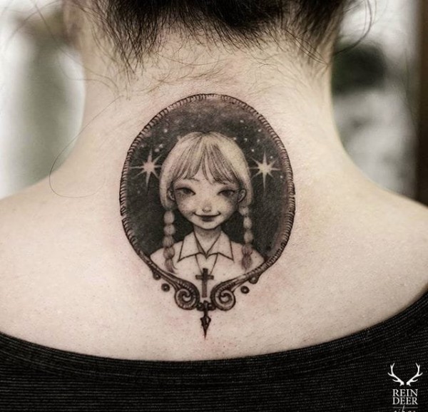 多款精美漂亮的绘画风格女孩纹身图案欣赏