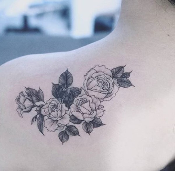 后肩唯美花藤英文图案图片_植物纹身图案大全_纹身图吧