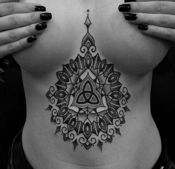 迷人的黑灰色曼陀罗图案纹身来自于纹身师曼纽尔