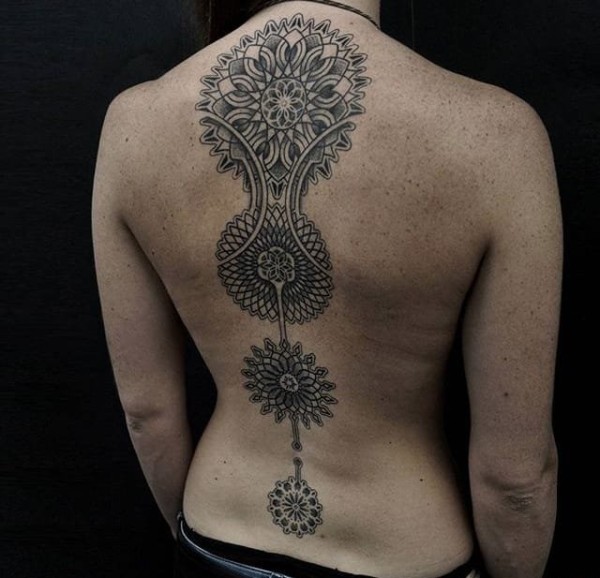 迷人的黑灰色曼陀罗图案纹身来自于纹身师曼纽尔