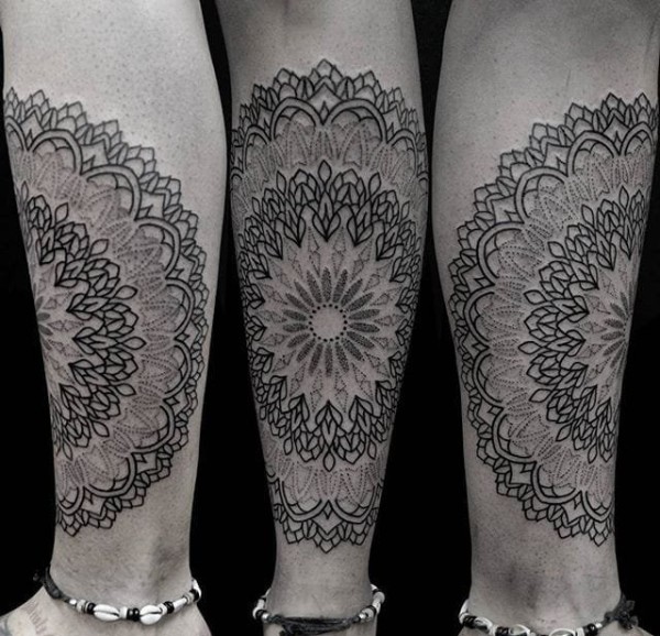 迷人的黑灰色曼陀罗图案纹身来自于纹身师曼纽尔