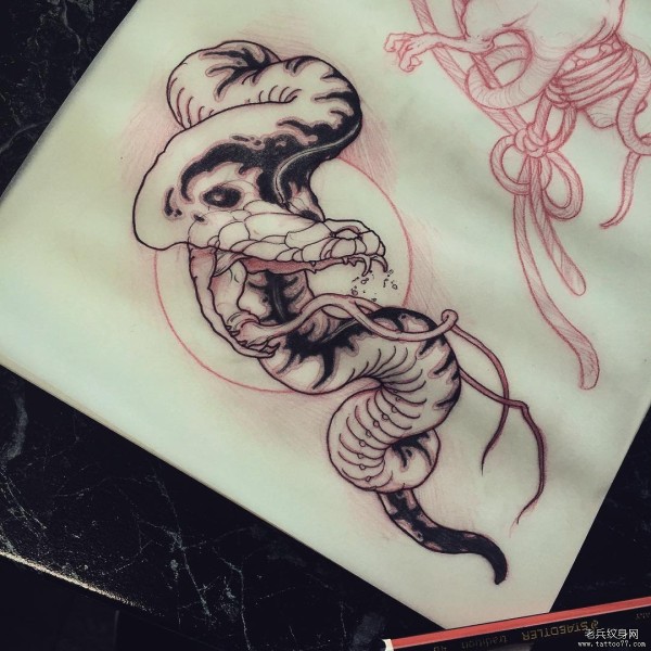 龙纹身手稿_一组老传统黑灰龙手稿纹身图案
