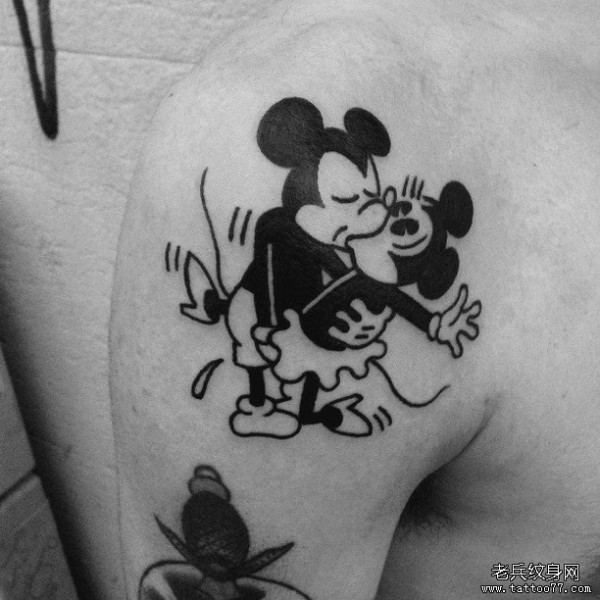 大臂卡通恩爱的米老鼠纹身图案
