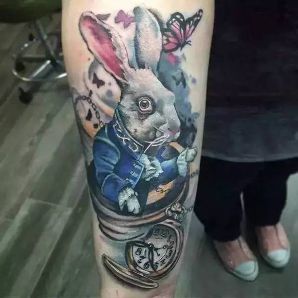 女生清新的爱丽丝梦游仙境纹身图案
