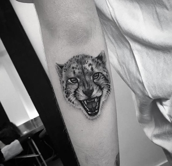 手臂上可爱的黑色动物图案纹身来自于纹身师伊丽莎白
