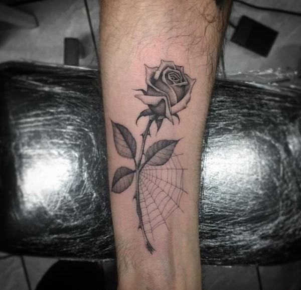 性感迷人的黑灰色纹身玫瑰花纹身图案来自于纹身师奥利弗