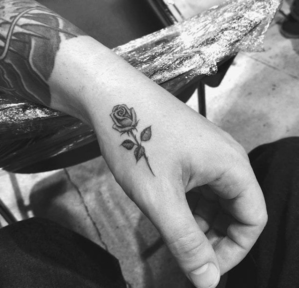 性感迷人的黑灰色纹身玫瑰花纹身图案来自于纹身师奥利弗