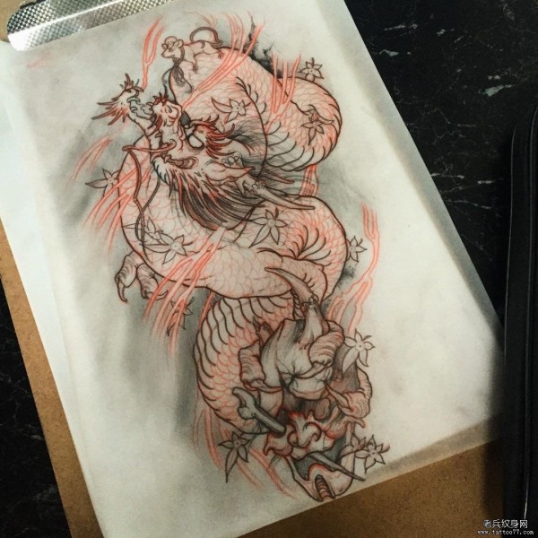 龙纹身手稿_一组老传统黑灰龙手稿纹身图案