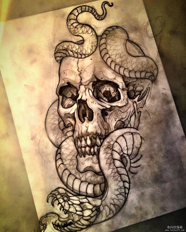 school蛇和骷髅纹身图案手稿