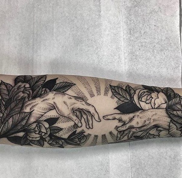 色彩阴暗的黑色点刺纹身图案
