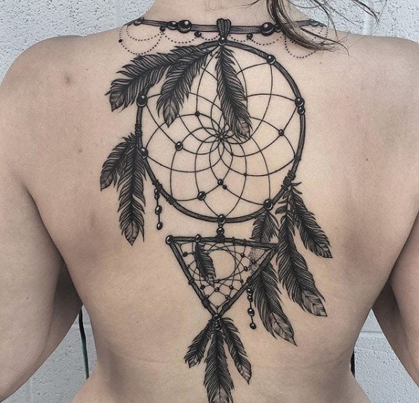 女生后腰纹身黑白灰风格抽象线条纹身图案