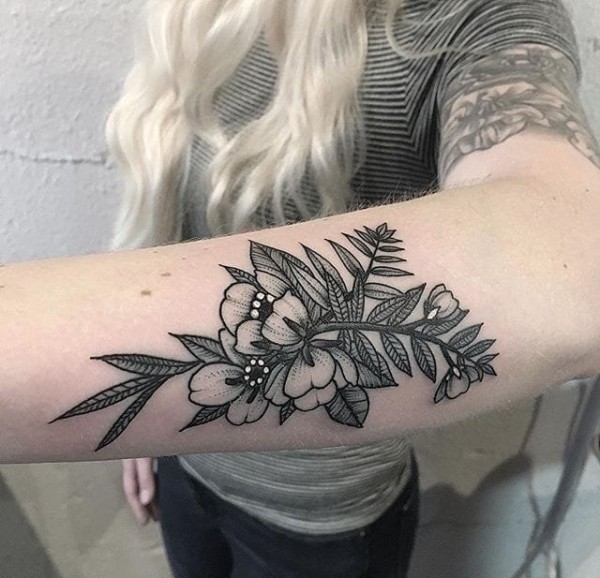 男人大臂黑白彼岸花骷髅_黑白纹身图案大全_纹身图吧
