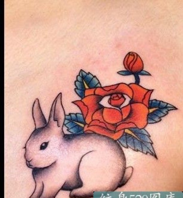 兔子和一朵玫瑰花纹身图案