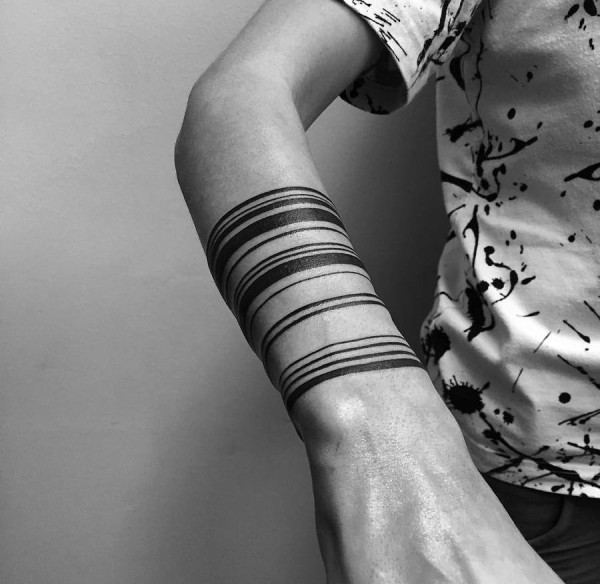 25款男性黑色手臂线条纹身点刺技巧半甲纹身图案