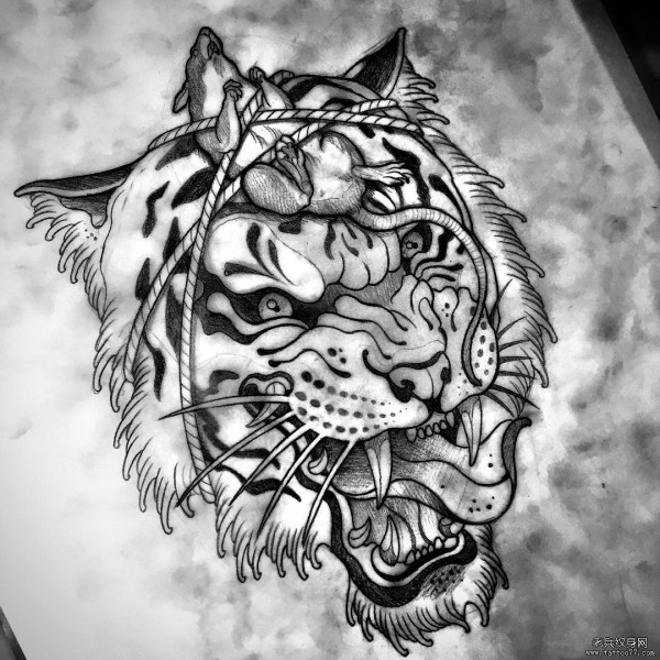 老虎和老鼠纹身图案手稿