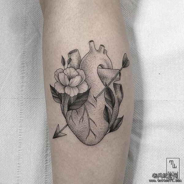 心脏小清新点刺箭花蕊纹身图案