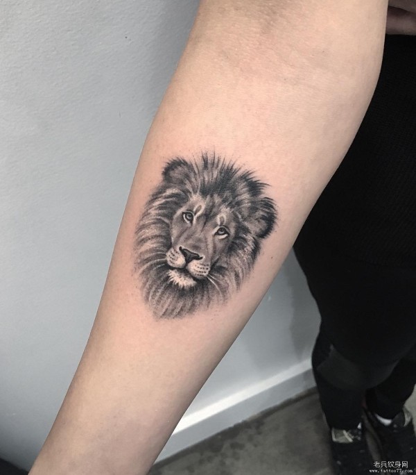 小臂狮子头像写实纹身图案
