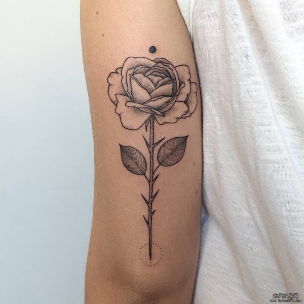 大臂小清新玫瑰点刺线条纹身tattoo图案