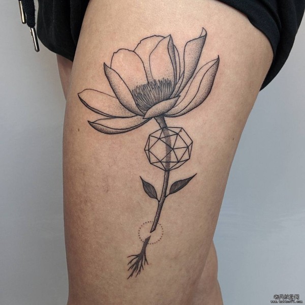大腿几何莲花线条纹身图案tattoo