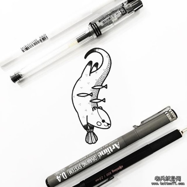 卡通小清新水懒纹身图案手稿