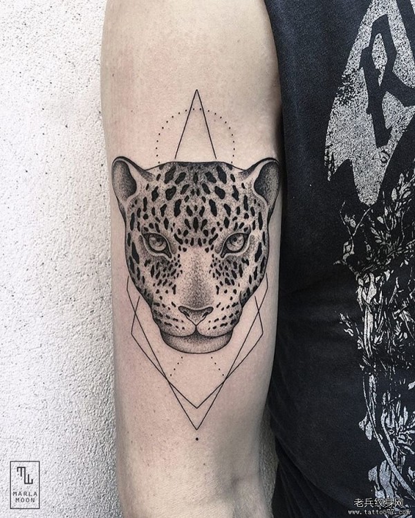 大臂豹子几何纹身图案