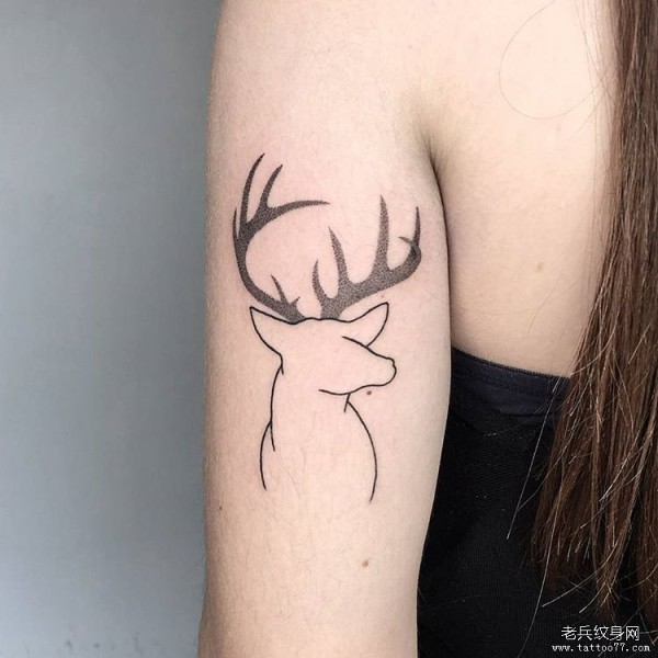 大臂小清新鹿线条点刺纹身图案