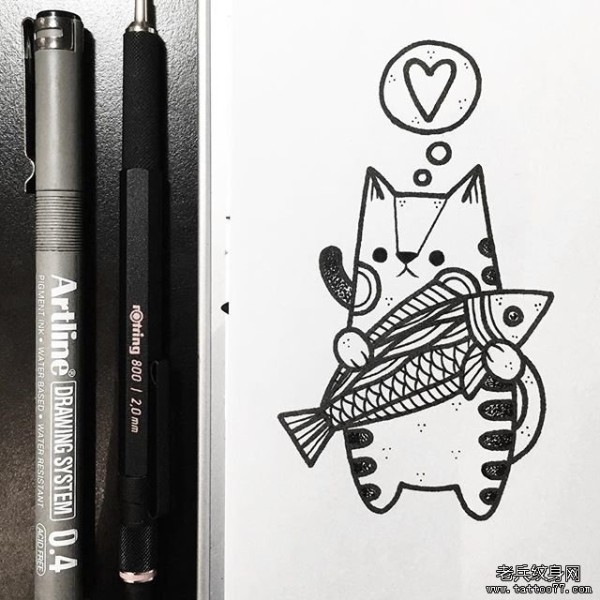 双鱼座纹身手稿_45张十二星座之双鱼手稿纹身图案