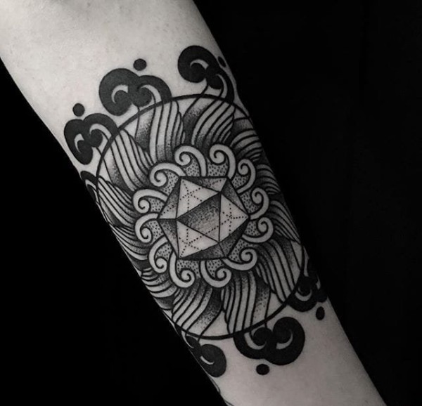 手臂上黑色几何点刺纹身图案来自纹身师杰森