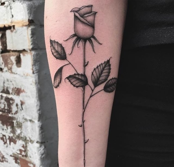 欧美玫瑰纹身 男生手臂上花朵纹身图片