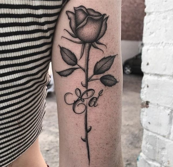 欧美玫瑰纹身 男生手臂上花朵纹身图片