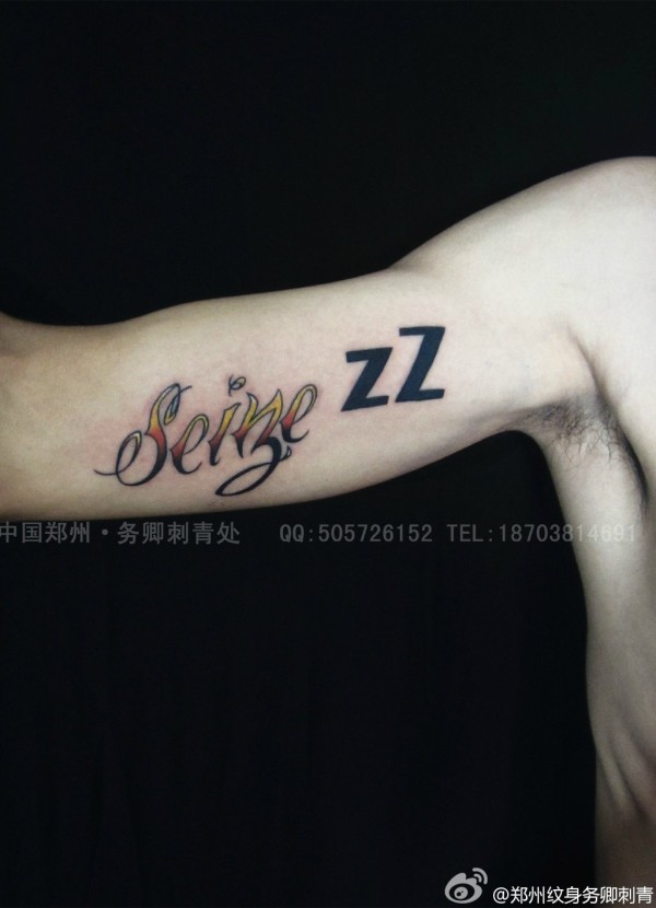 极度柔嫩的大臂内侧,花体英文加zZ字母