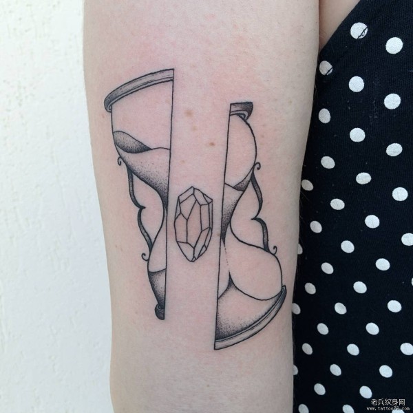 大臂个性破开的沙漏纹身图案