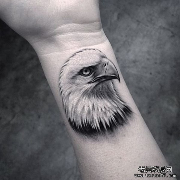手腕写实老鹰头像纹身图案