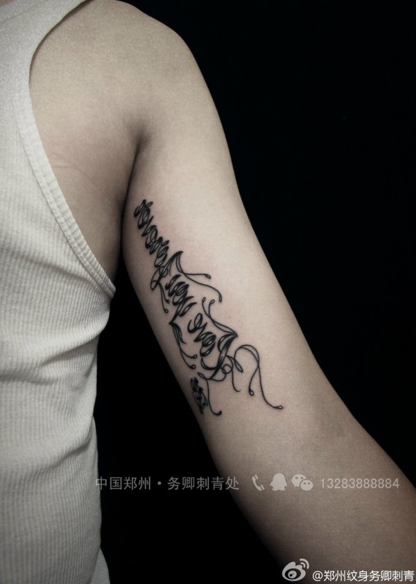 花体字纹身--一组男性漂亮的花体字纹身图案