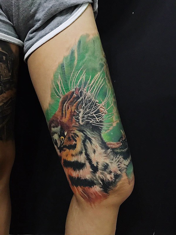传统花腿纹身--18张传统风格的大花腿纹身图案作品