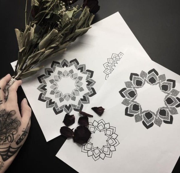 超完美黑色曼陀罗图案纹身点刺技巧来自纹身师利迪娅
