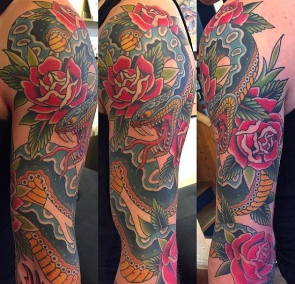 德国恐龙纹身眼镜蛇和卡通鳄鱼纹身水彩动物图案纹身