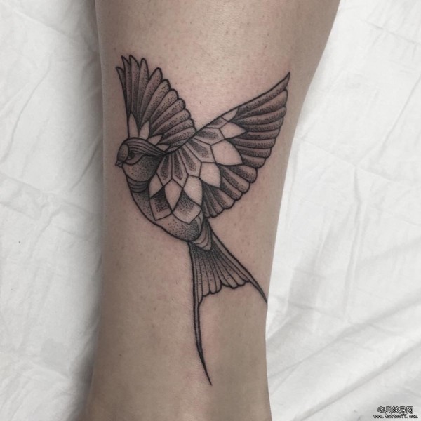 小臂鸟点刺线条黑灰纹身tattoo图案