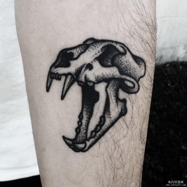 小臂骷髅头黑灰纹身tattoo图案