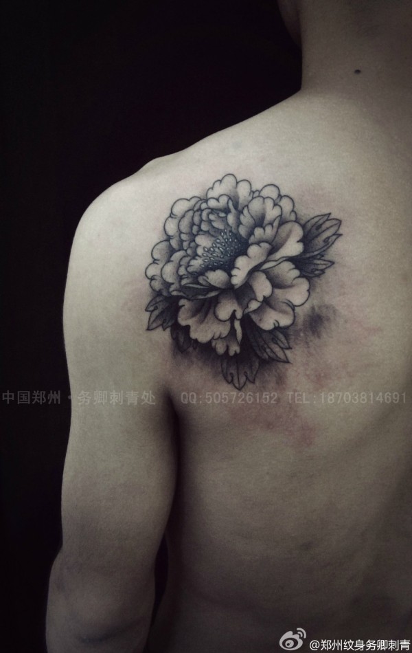 男人大臂黑白彼岸花骷髅_黑白纹身图案大全_纹身图吧