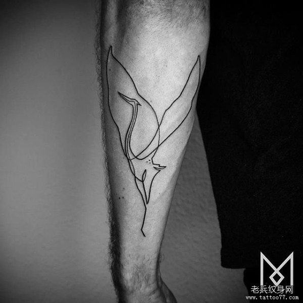 小臂丹顶鹤极简线条纹身图案