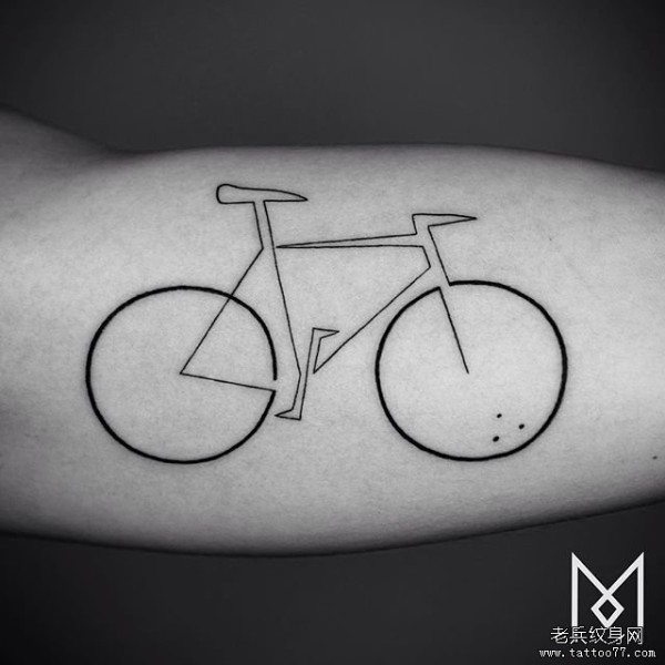 大臂自行车极简线条纹身图案