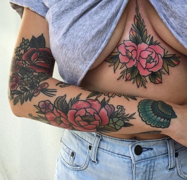 欧美玫瑰纹身 男生手臂上花朵纹身图片