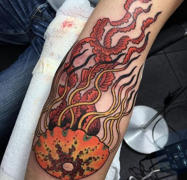 手臂一款彩色蘑菇纹身图案_臂部纹身图案大全_纹身图吧
