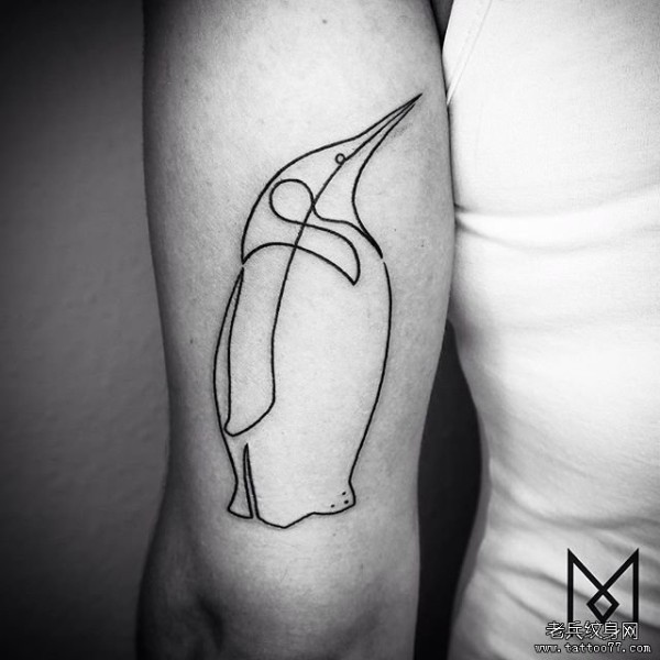 女生大臂极简线条企鹅纹身图案