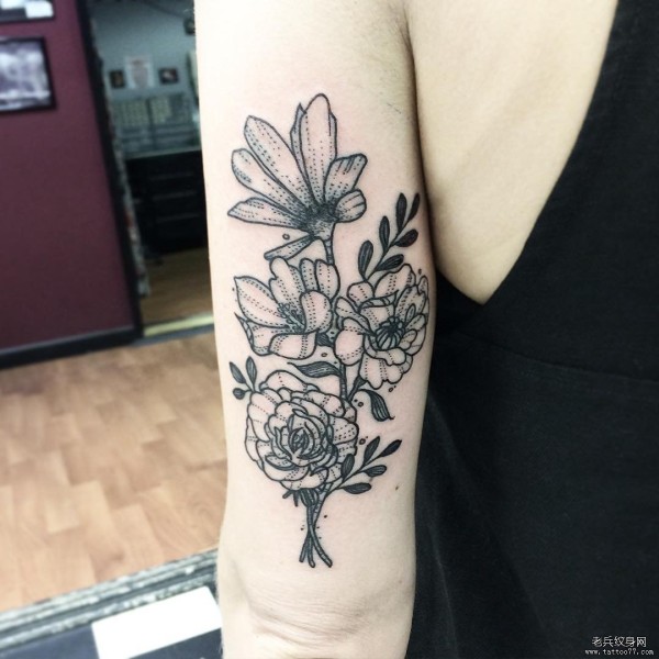 大臂点刺小清新花蕊纹身图案